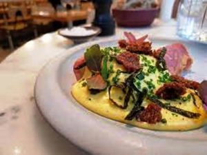On commence les réjouissances par des champignons grillés à la crème de ricotta ou un oeuf poché au yaourt crémeux et beurre au paprika. On continue sur l’autoroute du plaisir avec des assiettes généreuses et réconfortantes, comme les tagliatelles à la crème de champignons, oignons caramélisés et jambon Serrano, ou encore le coeur de Rumsteck Aubrac et sa sauce crémeuse au calvados.