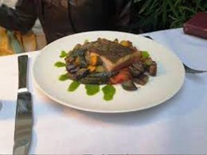 En entrée l’aubergine rôtie, mousse de soja grillé, pistaches craquantes et coulis abricot cognac est un must, le chef joue le mariage des goûts et textures avec brio.