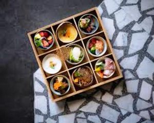 On trouve dans les étapes de ce menu de nombreux mets plutôt à dominance Française, le côté « Japon » apparaissant par petites touches à travers des ingrédients ou des assaisonnements particuliers.
