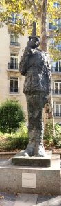 Au 92 rue Bonaparte 75006 devant l’Institut Culturel Hongrois la belle sculpture Sous le chapeau de Andras Lapis