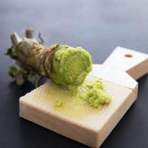 Traditionnellement, on râpe la tige de wasabi qui est très dure à l’aide d’une râpe en peau de requin afin d’obtenir une pâte de couleur verte très intense qui a une saveur fraîche et piquante.