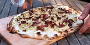 La tarte flambée, également connue sous le nom de Flammekueche, est depuis plusieurs siècles un plat typique de l’Alsace et des territoires allemands adjacents Palatinat, Baden et Moselle. Cette spécialité régionale est apparue plus ou moins par hasard et n’a en fait été découverte par le grand public qu’au cours des dernières années. Il s’agit en fait d’un produit résiduel de la cuisson du pain. Les divers villages de la région possédaient de grands fours chauffés au bois au centre desquels on testait la température en y déposant des restes de pâte à pain. Comme il était dommage de jeter cette pâte, avant de la mettre dans le four, on la déroulait et la garnissait de quelques ingrédients simples.