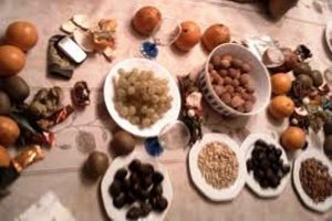 les quatre « mendiants »; figues sèches, raisins secs, amandes et noisettes qui représentent les ordres des Franciscains, Dominicains, Carmes et Augustins