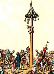 3-On y érige un mât de cocagne enduit de graisse de volaille fournie par les multiples rôtisseurs qui étaient installés dans cette voie qui alors s’appelait la rue aux ours ( oies en vieux français).