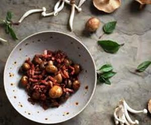 B Des pâtes au jambon cru