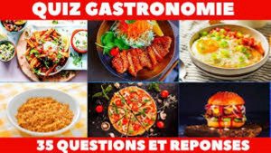Quiz portant sur la gastronomie à travers le monde. Ingrédients divers, ustensiles variés et mets délicieux sont au rendez-vous.