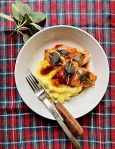 Les divers ingrédients utilisés pour réussir la recette sont : râbles de lapin, tranches de jambon sec de montagne, feuilles de sauge, gousse d’ail, huile, beurre…
