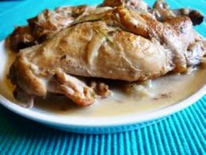 Les divers ingrédients utilisés pour réussir la recette sont : belles cuisses de lapin (appelées parfois gigolettes de lapin), beurre, lardons non fumés, gousses d’ail, vin blanc sec, eau, oignon de taille moyenne, clous de girofle, bouquet garni, farine, sel, poivre moulu…