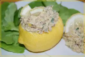 Cette recette d’entrée originale, fraîche et colorée ne vous demandera pas plus de 4 ingrédients simples et 25 minutes de préparation ! Les citrons jaunes sont évidés puis garnis d’un mélange de sardines à l’huile d’olive, dés de fenouil, jus de citron et aneth.