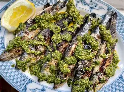 Les divers ingrédients utilisés pour réussir la recette sont : sardines, thym citron frais, feuilles de sauge, huile d’olive, gousses d’ail, jus de citron jaune, poivre…