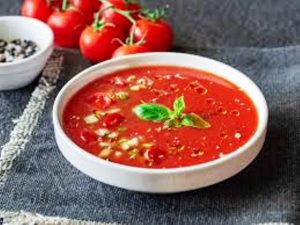 Venu d’Espagne, le gaspacho est réalisé ici avec des tomates mûres, des œufs, du pain, des gousses d’ail, de l’huile d’olive et du vinaigre. Idéale pour un repas estival.