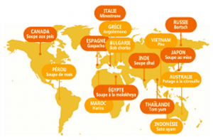 La popularité de la soupe se vérifie à travers les six continents. En Espagne, on aime la déguster froide pour se rafraîchir : c’est le fameux gaspacho. Les Etats-Unis, premier pays producteur de maïs, préparent eux l’onctueux corn chowder. Si vous préférez les saveurs épicées, direction l’Asie avec le mulligatawny indien ou le bouillon thaïlandais. Le bortsch ukrainien, quant à lui, vous fournira une belle idée pour cuisiner vos betteraves. Des recettes de soupes du monde entier qui mettront de l’exotisme et de la couleur dans la grisaille hivernale !