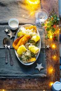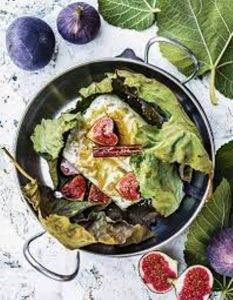 Les ingrédients nécessaires pour réaliser la recette sont : grosses feuilles de figuier, figues, pavés de cabillaud, bâtons de cannelle, zeste et jus d’oranges, zeste et jus de citrons vert…