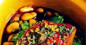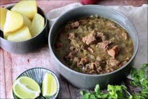 Les ingrédients nécessaires pour réaliser la recette sont : côte de bœuf ou de paleron, poivrons séchés, gousses d’ail, oignons rouges, coriandre fraîche, brin de romarin, brin d’origan, brins de menthe, bouillon de légumes, huile d’olive, vinaigre de vin blanc, cumin moulu, sel, poivre noir…