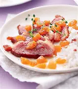 Magret de canard au melon jaune caramélisé