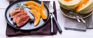 Magret de canard aux épices et melon caramélisé