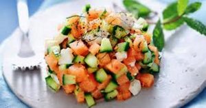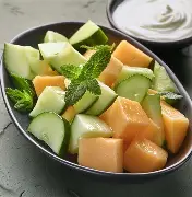Salade de concombre melon menthe sauce au yaourt