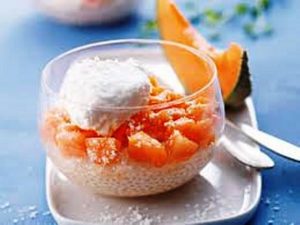 Verrines de perles du Japon au melon et à la noix de coco