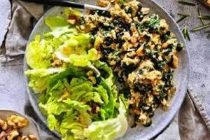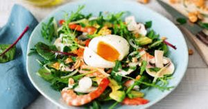 Salade de crevettes aux œufs mollets et aux cacahuètes