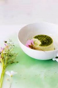 Les divers ingrédients utilisés pour réussir la recette sont : crème liquide entière, lait, sucre, agar-agar, thé matcha en poudre, cacahuètes grillées hachées grossièrement, mascarpone, thé matcha…