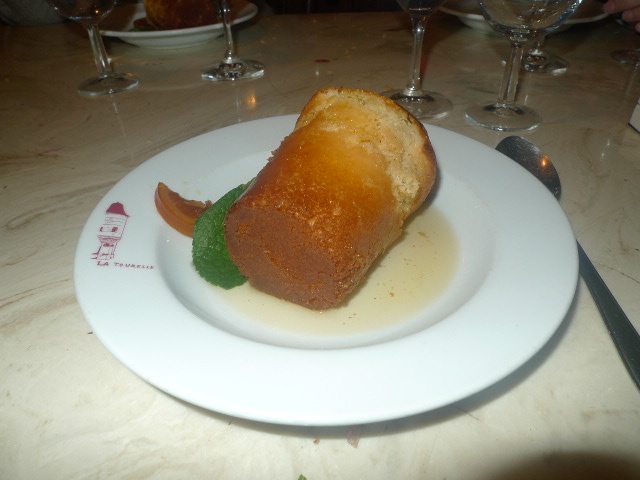 Pour terminer sur une note sucrée, j’ai commandé un baba au rhum très fortement « rhumé » accompagné d’orange confite mais dommage il était un poil légèrement rassi.