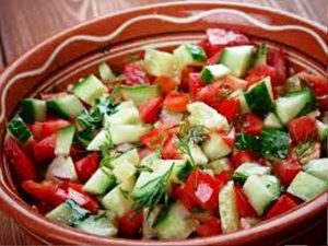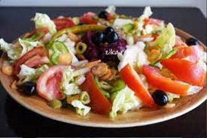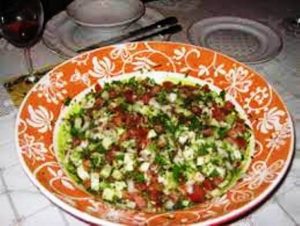 Parfaite pour les chaudes journées d’été en accompagnement de grillades ou d’assortiments froids, la salade tunisienne est aussi très bonne pour la santé, car elle est composée de tomate, de concombre et de poivron vert !