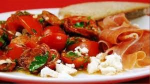 Les ingrédients utilisés pour réussir cette recette sont : tomates, petite boule de mozzarella, petit sachet de roquette, Parmesan, demi-coeurs d’artichauts à la sicilienne (en bocal), herbes de Provence, petits quartiers de citron, fleur de sel, poivre, huile d’olive…