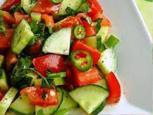 La salade Shirazi tient son nom de sa ville d’origine : Shiraz dans le sud ouest de l’Iran. Cette salade iranienne est un incontournable de la gastronomie locale. Elle est composée de concombres, tomates, oignons et de piments ou poivrons coupés en petit dès.