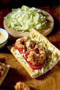 Le po’ boy (pour poor boy) comporte du poisson ou des fruits de mer frits. Souvent, ce sont des crevettes, mais il y a plusieurs autres versions, incluant une aux huitres. On y ajoute de la laitue, des tomates, des cornichons et de la mayonnaise ou de la sauce rémoulade. Facultatif: une bonne dose de sauce piquante à la louisianaise.
