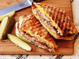 Un sandwich cubain (espagnol : Sándwich cubano) est une variante d’un sandwich au jambon et au fromage qui est probablement originaire de cafés destinés aux travailleurs cubains de Tampa ou de Key West, deux premières communautés d’immigrants cubains en Floride centrées sur l’industrie du cigare. Plus tard, des exilés et des expatriés cubains l’ont apporté à Miami, [2] où il est également très populaire. Le sandwich est composé de jambon, de porc rôti (mojo), de fromage suisse, de cornichons, de moutarde et parfois de salami sur pain cubain. Le salami est inclus à Tampa, où il y a une grande population italienne, mais n’est généralement pas inclus dans le sud de la Floride.