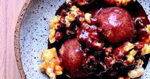 Pop-corn caramélisé sauce chocolat glace caramel beurre salé de Cyril Lignac