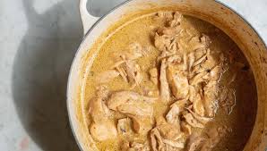Les divers ingrédients utilisés pour réussir la recette sont : poulet (découpé en morceaux par le boucher), gros oignon, beurre, farine, vin blanc, crème fraîche épaisse, jaune d’œuf…