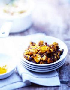 Les divers ingrédients utilisés pour réussir la recette sont : chou-fleur, curcuma, paprika, piment de Cayenne, poivre, sucre, gousse d’ail, huile d’olive…