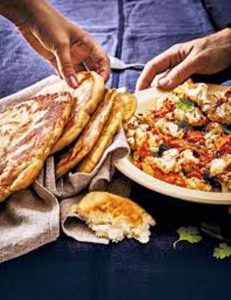 Pour les naans : farine de blé, levure chimique, levure boulangère, sel, sucre, huile, yaourt bulgare, portions de vache qui rit…