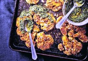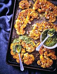 Tranches de chou-fleur rôties pesto de chou kale et noisettes