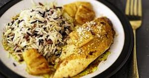 Dinde dorée au curry et riz exotiques à l’ananas