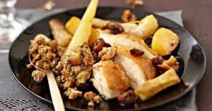 Dinde farcie au foie gras et légumes oubliés