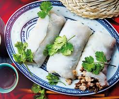 Les divers ingrédients utilisés pour réussir la recette sont : farine pour pâte à bánh cuón (en épicerie asiatique), huile de tournesol