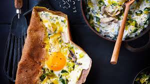 Les divers ingrédients utilisés pour réussir la recette sont : champignons de Paris, gros poireau, beurre, fromage frais à tartiner, beaufort râpé, beaufort coupé en lamelles, œufs, galettes de sarrasin, sel, poivre…