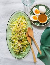 Salade de poireau et betterave crus oeufs mollets et herbes
