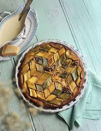 Une tarte graphique qui change de la quiche aux poireaux, avec un léger goût de cendré.