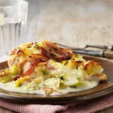 Les divers ingrédients utilisés pour réussir la recette sont : blancs de poireaux, grandes tranches de speck, comté 18 mois d’affinage, crème épaisse, origan séché, beurre…