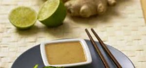 Les divers ingrédients utilisés pour réussir la recette sont : jus et le zeste de lime, vinaigre de riz, huile de sésame, eau, gingembre frais haché, huile d’olive, sel poivre…