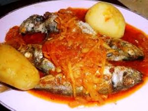 Les divers ingrédients utilisés pour réussir la recette sont : petits chinchard, oignons, gousses d’ail, citron, concentré de tomate, piment doux en poudre, piment rouge en poudre, dose de safran en poudre, huile d’olive, vin blanc sec, fumet de poisson, sucre, farine, branche de thym, persil haché, sel, poivre…