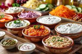 Pour la sauce au fromage frais : fromage frais, jus de citron jaune, piment en poudre, tronçon de gingembre, gousse d’ail, menthe, persil, huile d’olive…