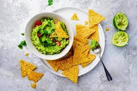 Pour le guacamole : gros avocats mûrs, tomate mûre, petit piment rouge, petits citrons verts, coriandre fraîche, sel, mélange d’épices pour guacamole…