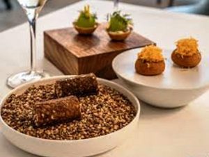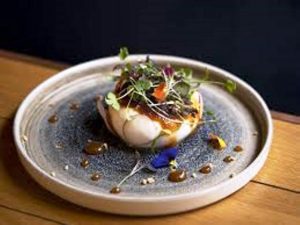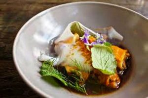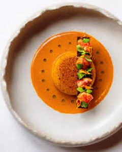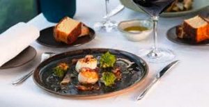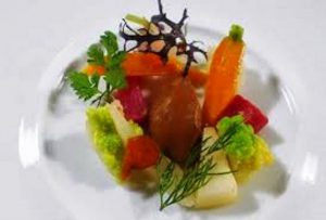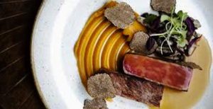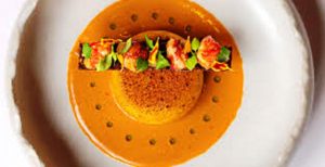 Pour 95€ à midi, tu pourras déguster des escargots petits gris fermiers de l’Ardèche avec des pommes de terre Charlotte confites accompagnés d’une crème parmentière à l’ail doux. Mais aussi un rouget barbet et « sa rôtie de foies », sauce lie de vin et échalotes confites.