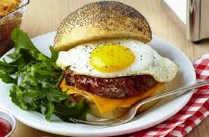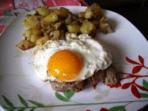 Description : Œuf sur plat posé sur viande ou toast.
