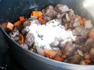 Description : Action de saupoudrer farine sur viande ou légumes pour épaissir.