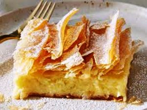 La bougatsa est une pâtisserie grecque qui existe en version salée et sucrée. Préparées à base de pâte filo, elles sont généralement farcies au fromage feta ou à la viande pour la version salée, et à la crème vanillée à la semoule pour la version sucrée. En forme de triangle et cuites au four, elles sont croustillantes et savoureuses en bouche.